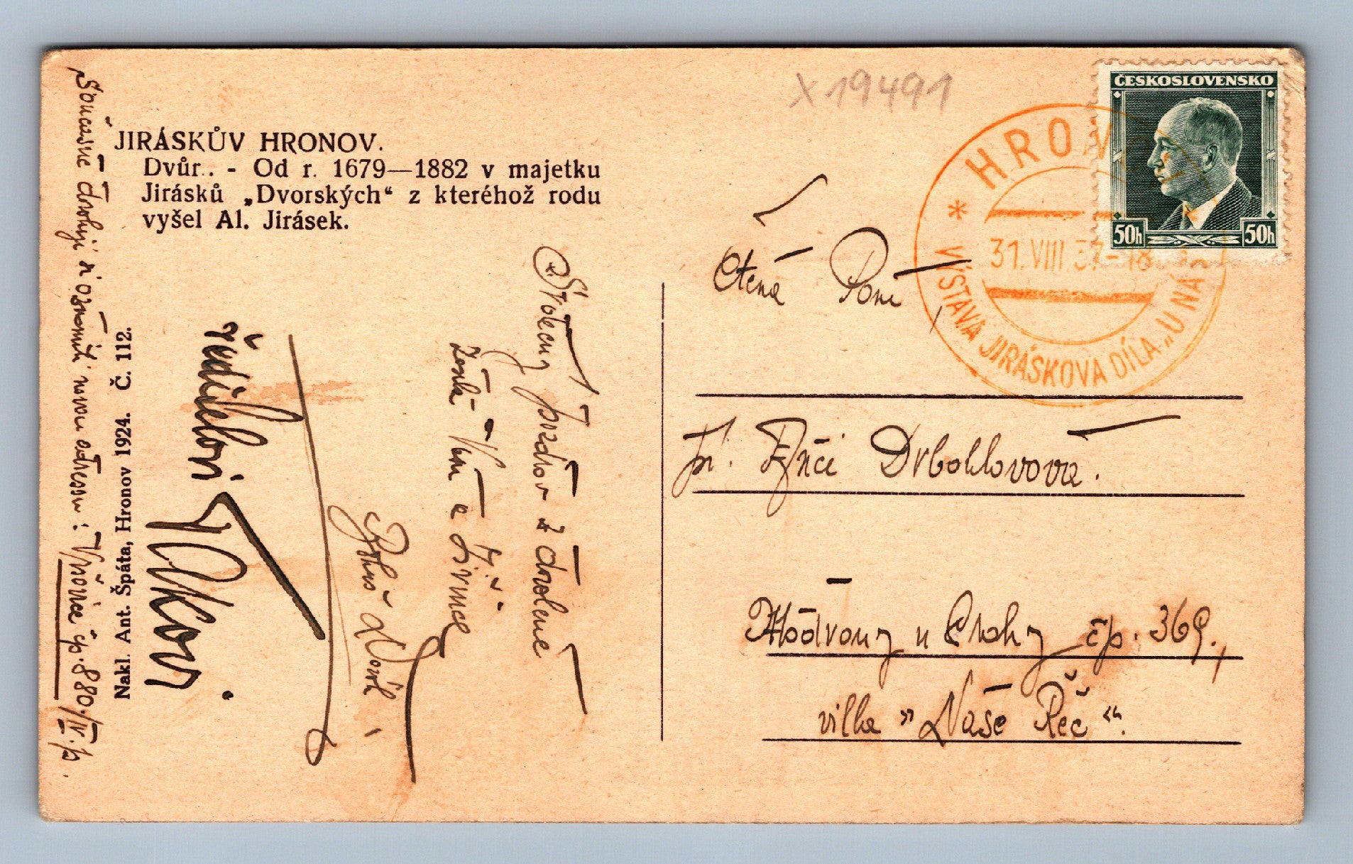 Pohlednice JIRÁSKŮV HRONOV (x19491)