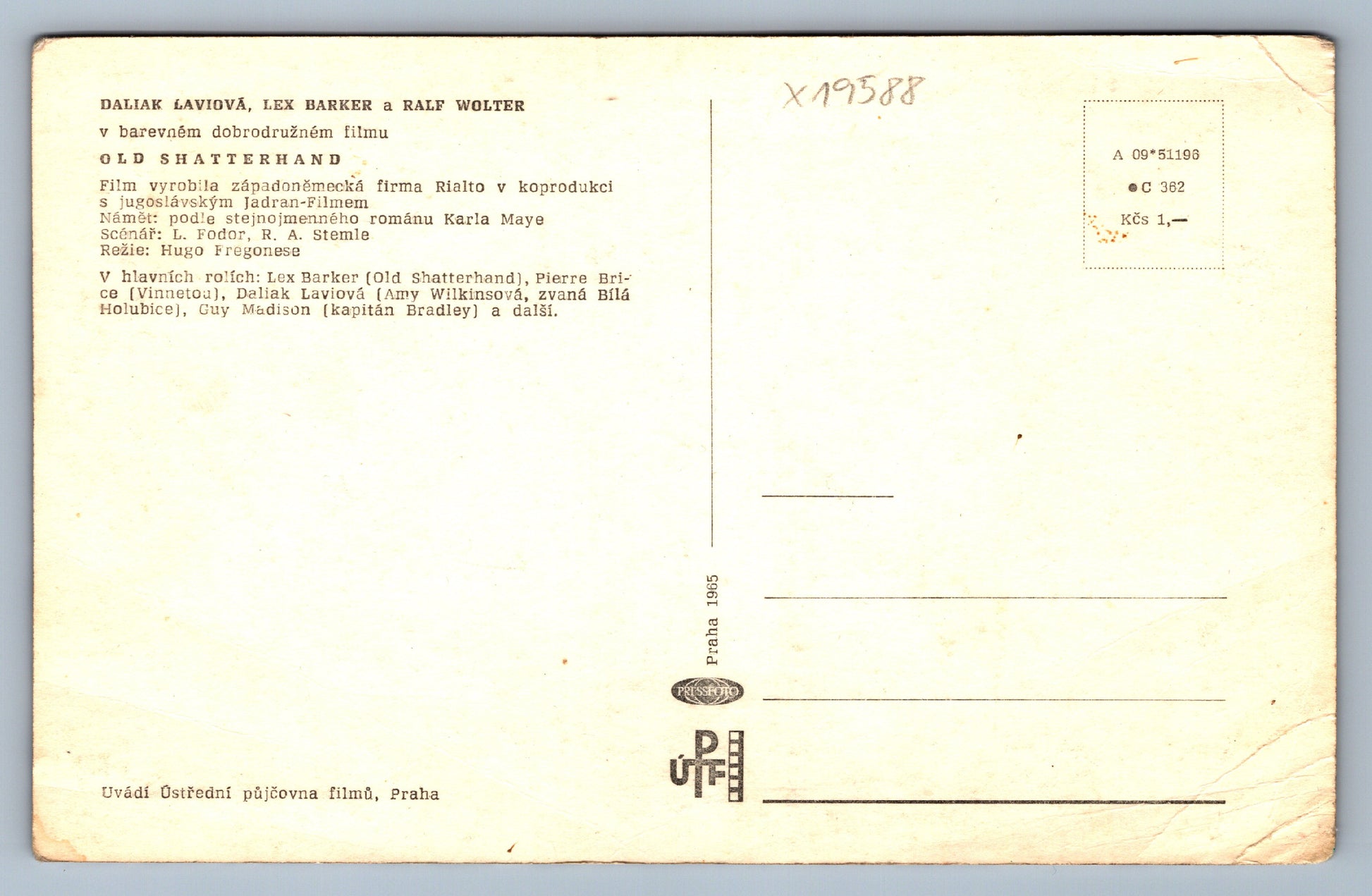 Pohlednice DALIAK LAVIOVÁ, LEX BARKER A RALF WOLTER VINNETOU A OLD SHATTERHAND (x19588)