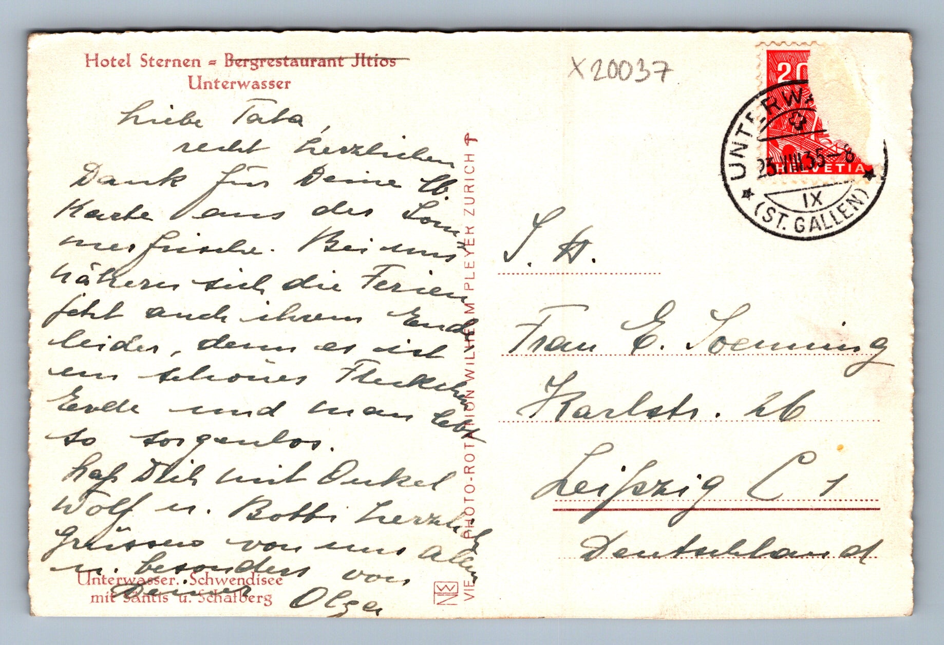 Pohlednice HOTEL STERNEN - UNTERWASSER (x20037)