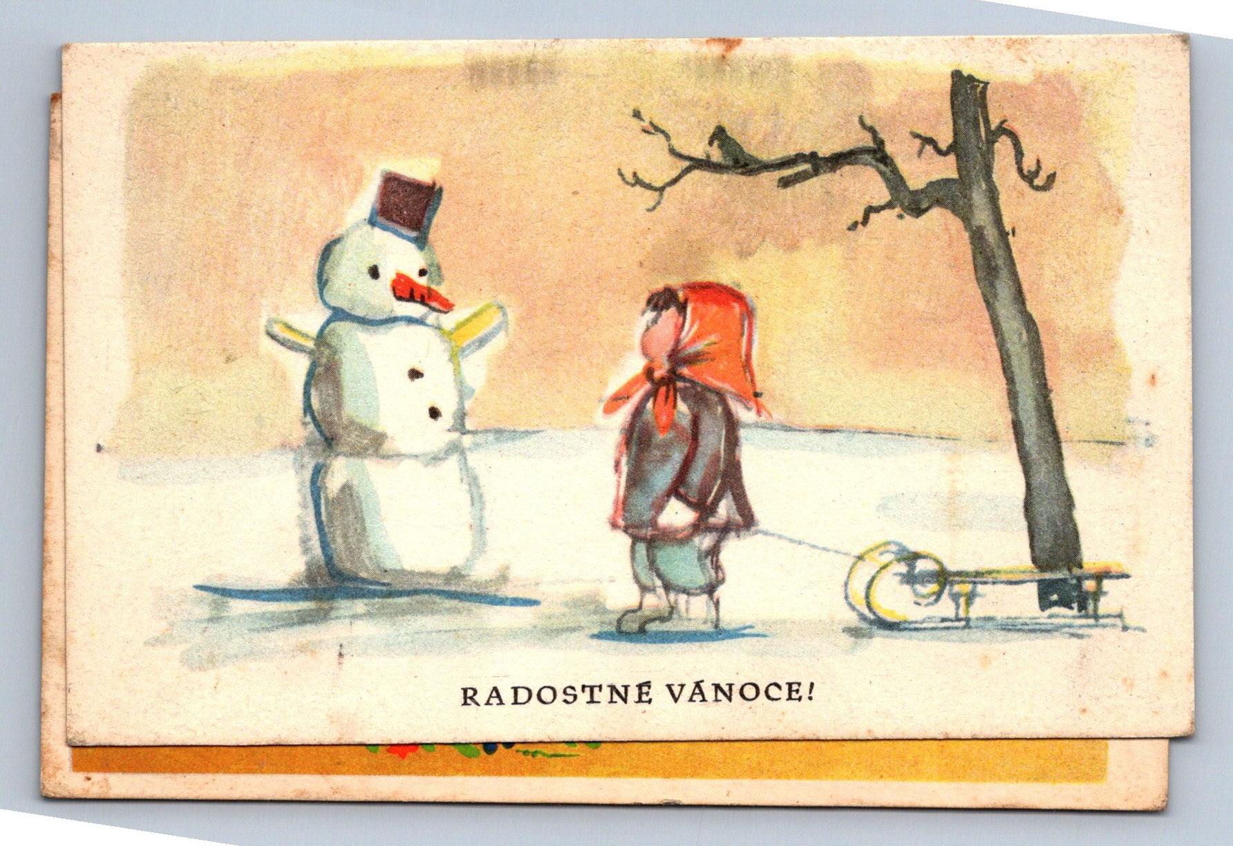 Pohlednice RADOSTNÉ VÁNOCE KOLOROVANÁ KRESBA A. M. PROCHÁZKY (X23031)