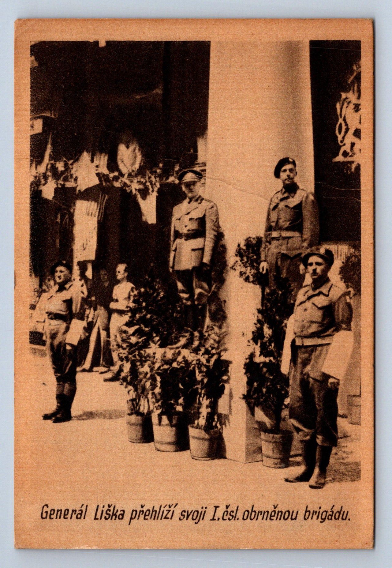 Pohlednice GENERÁL LIŠKA PŘEHLÍŽÍ SVOJI I. ČSL OBRNĚNOU BRIGÁDU (X23119)