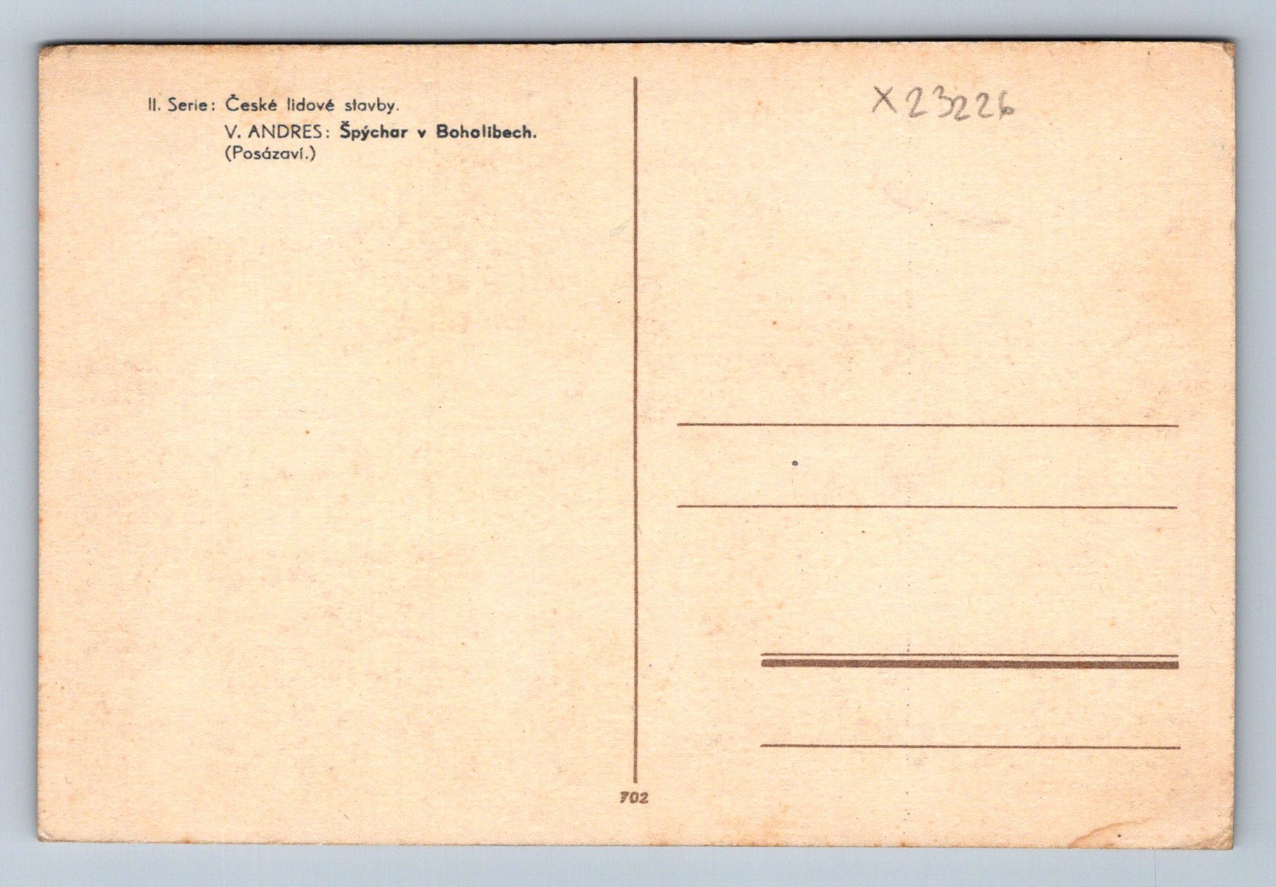 Pohlednice ČESKÉ LIDOVÉ STAVBY - V- ANDRES - ŠPÝCHAR V BOHOLIBECH (X23226)