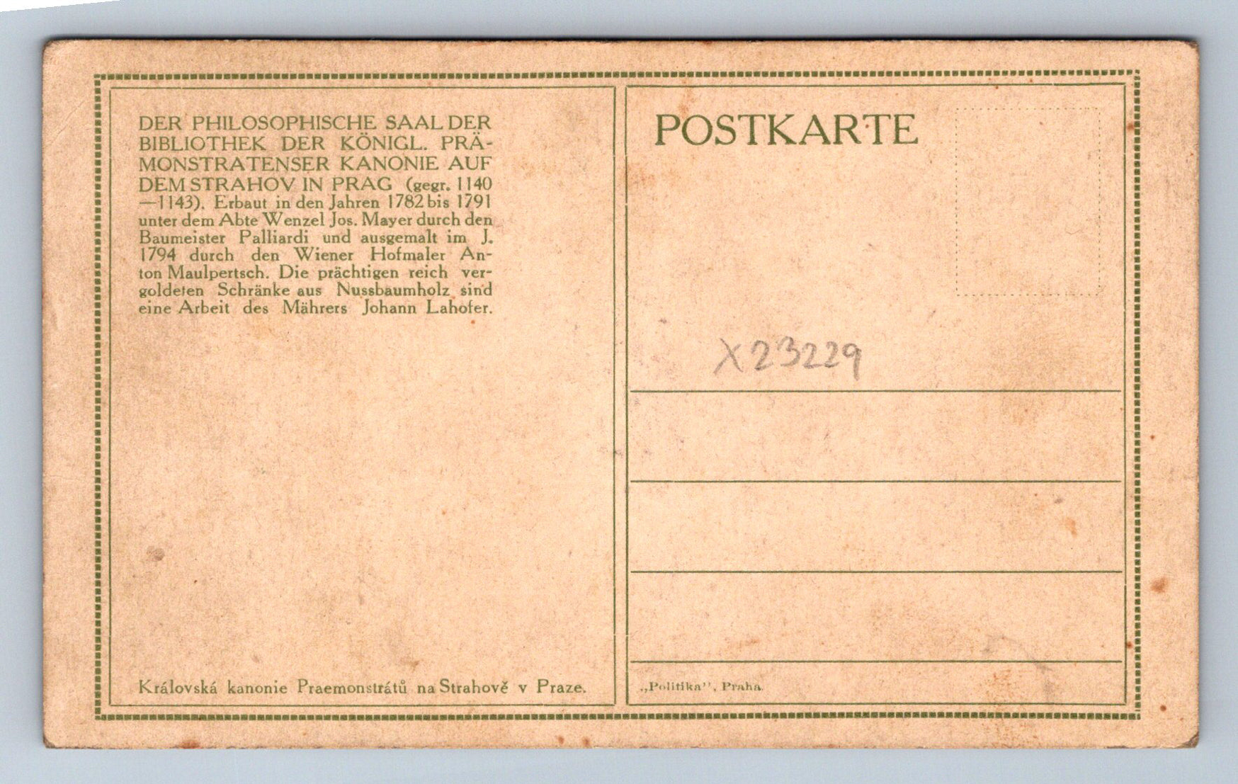 Pohlednice KRÁLOVSKÁ KANONIE PRAEMONSTRÁTŮ NA STRAHOVĚ V PRAZE (X23229)