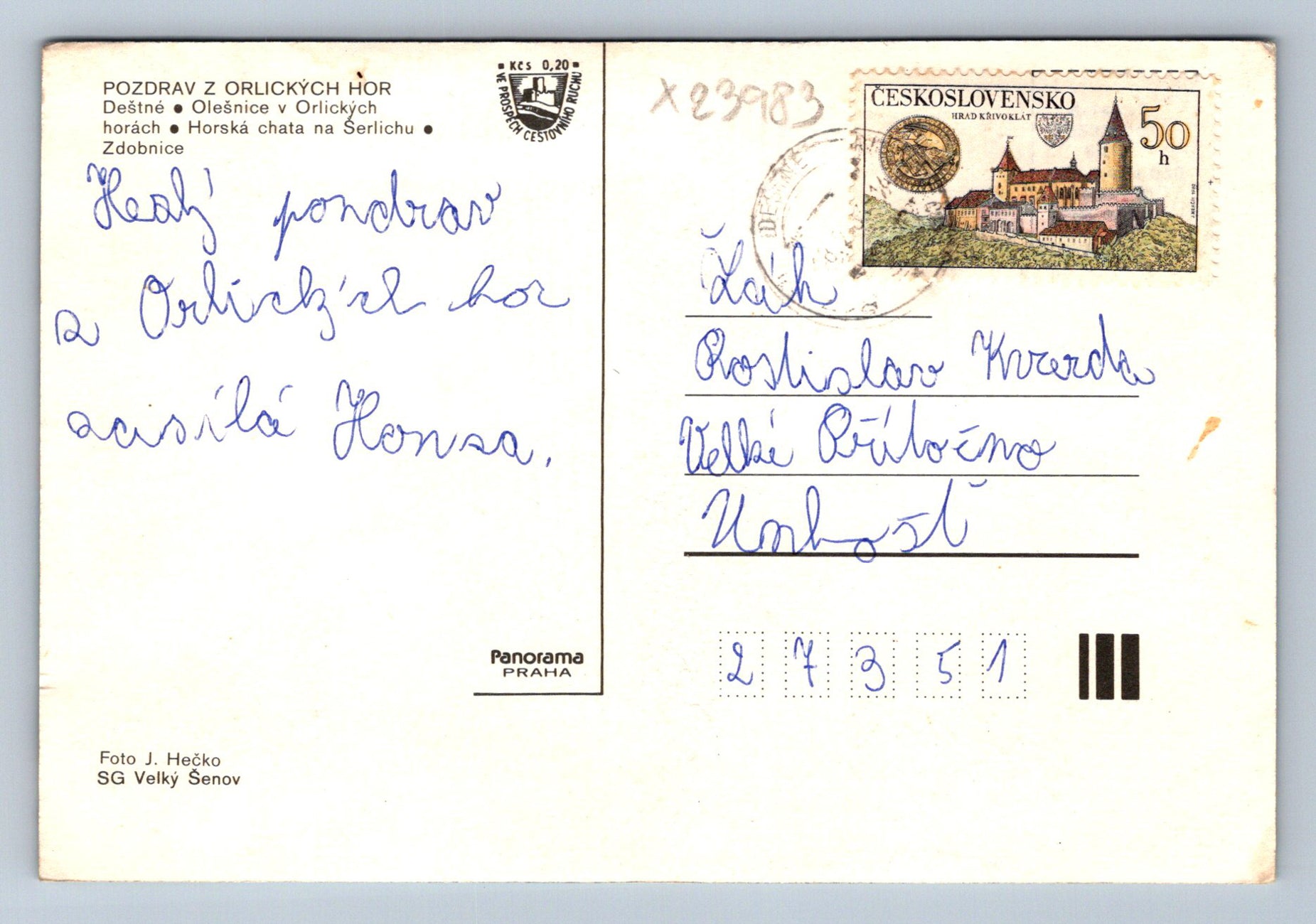 Pohlednice POZDRAV Z ORLICKÝCH HOR (X23983)