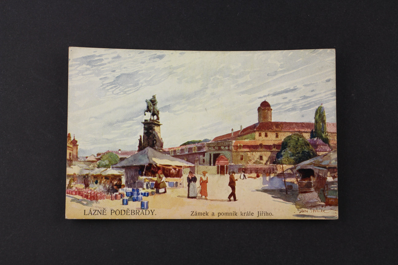 Pohlednice Lázně Poděbrady zámek a pomník krále Jiřího