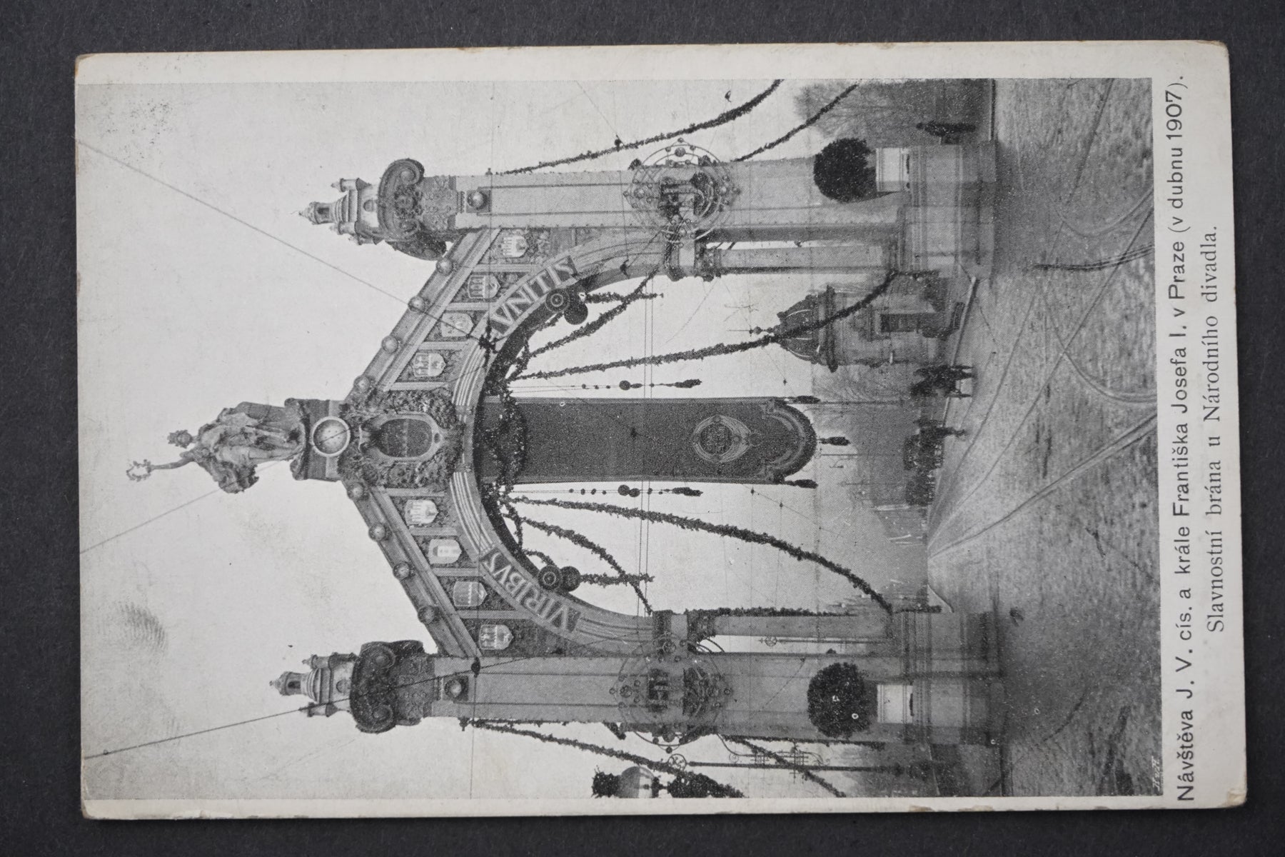Pohlednice SLAVNOSTNÍ BRÁNA U NARODNÍHO DIVADLA NÁVŠTĚVA J.V. CÍS A KRÁLE FRANTIŠKA JOSEFA I. V PRAZE 1907 x8866