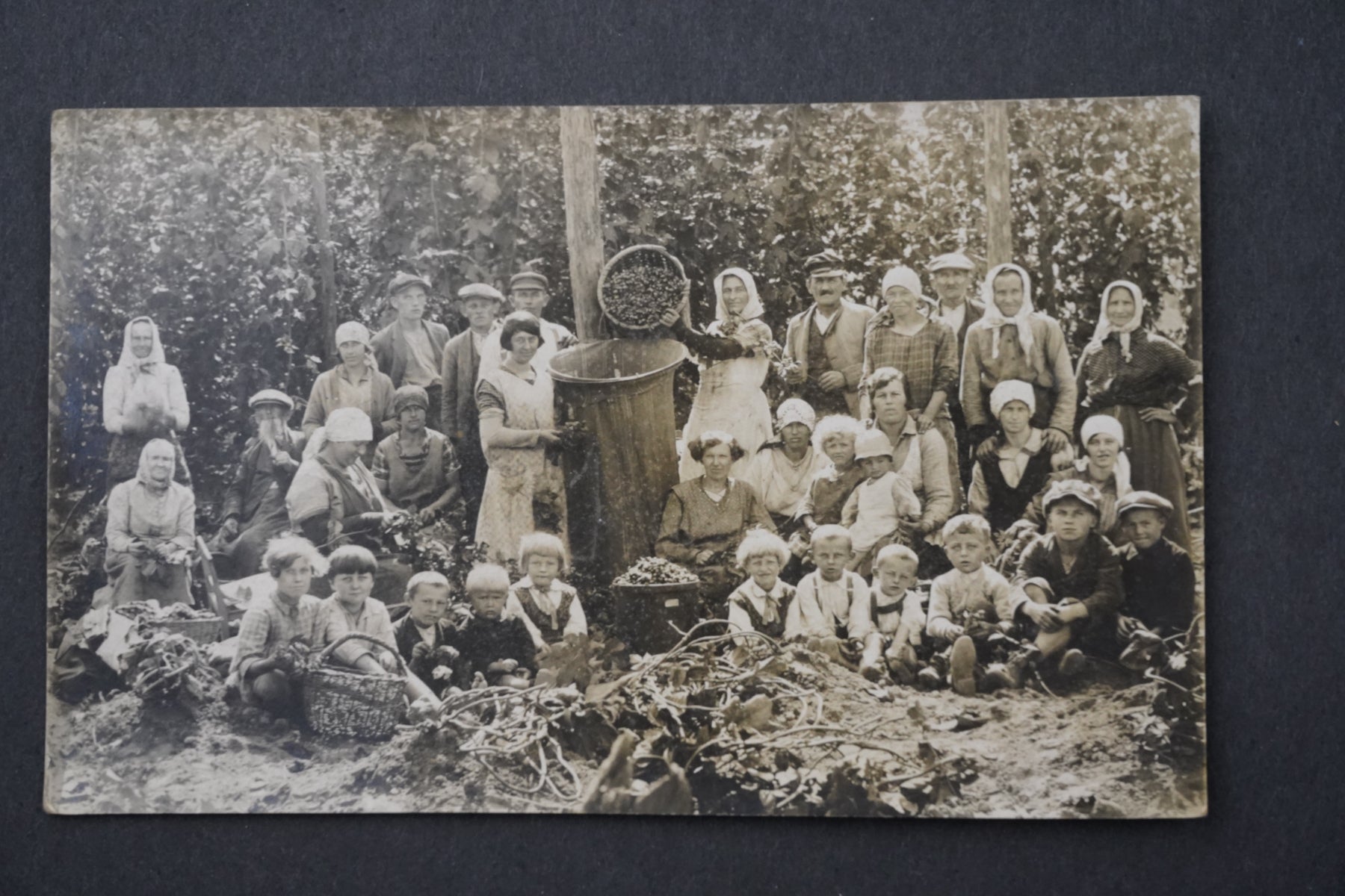 Pohlednice sběr stará fotografie chmelařství pivo RAKOVNÍK česání chmele x8994