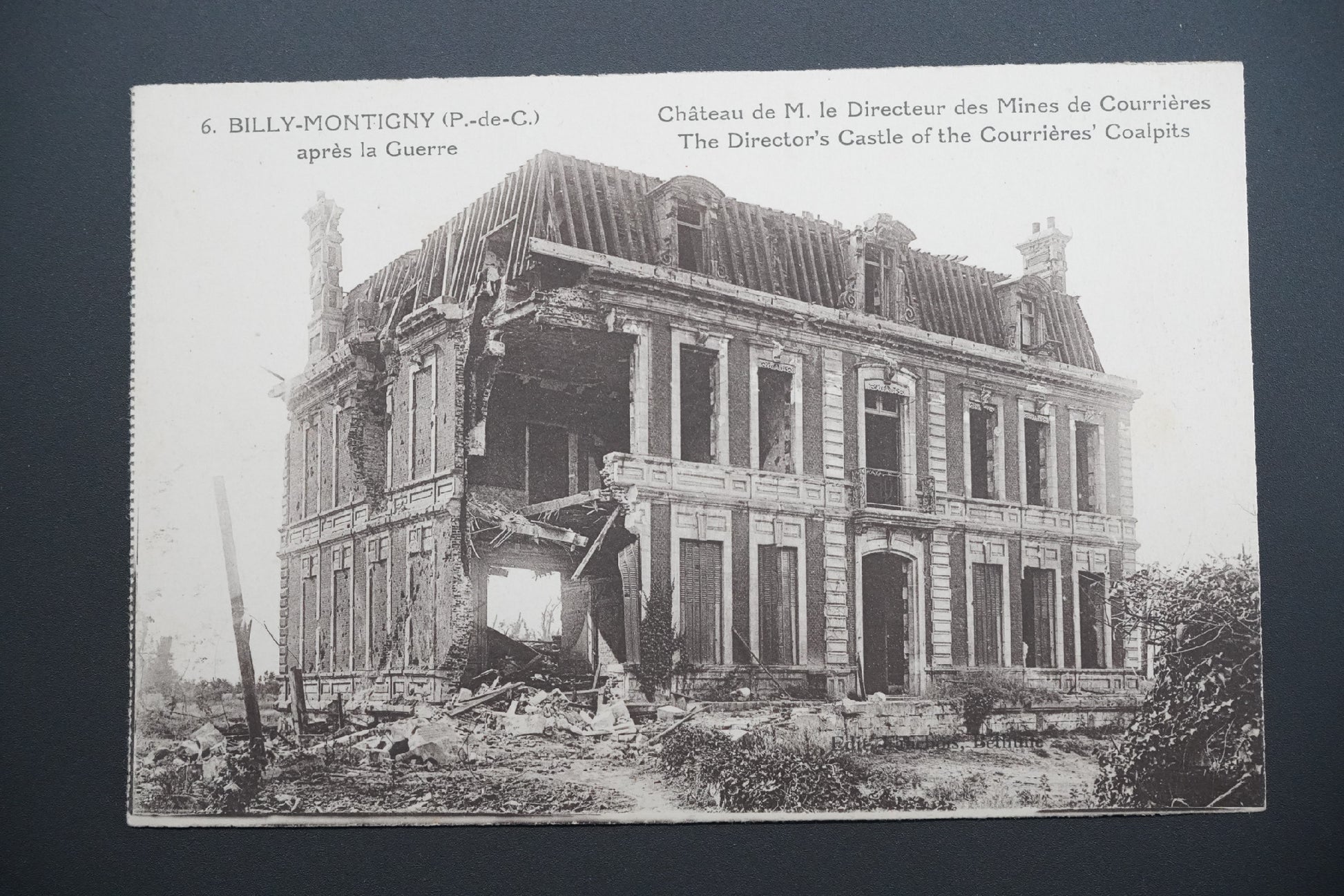 Pohlednice 6. BILLY-MONTIGNY (P.-de-C.) apres la Guerre. CHATEAU DE M. LE DIRECTEUR DES MINES DE COURRIERES. THE DIRECTOR`S CASTLE OF THE COURRIERE`S COALPITS.