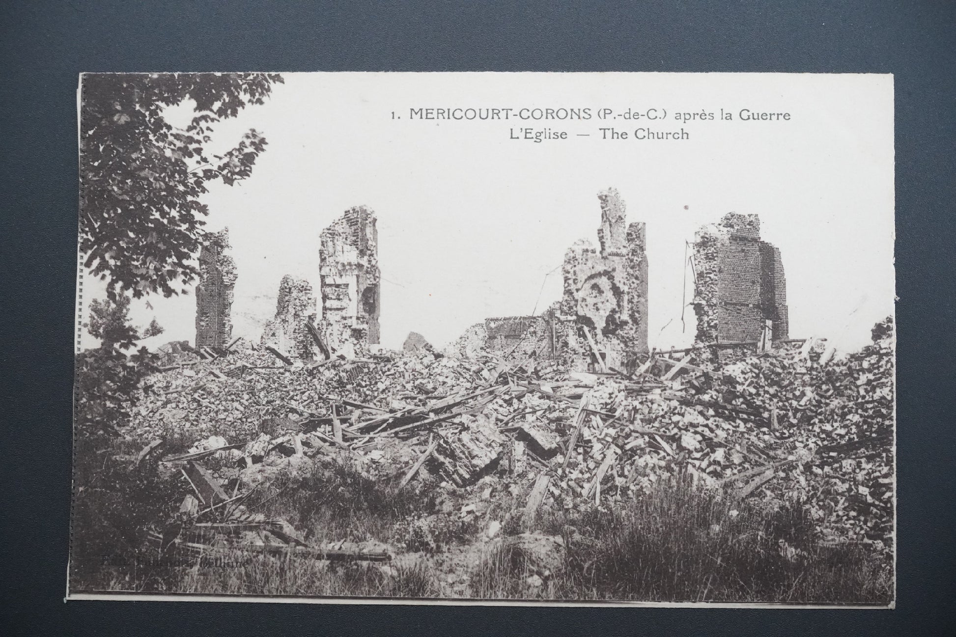 Pohlednice 1. MERICOURT-CORONS (P.-de-C.) APRES LA GUERRE L`EGLISE - THE CHURCH