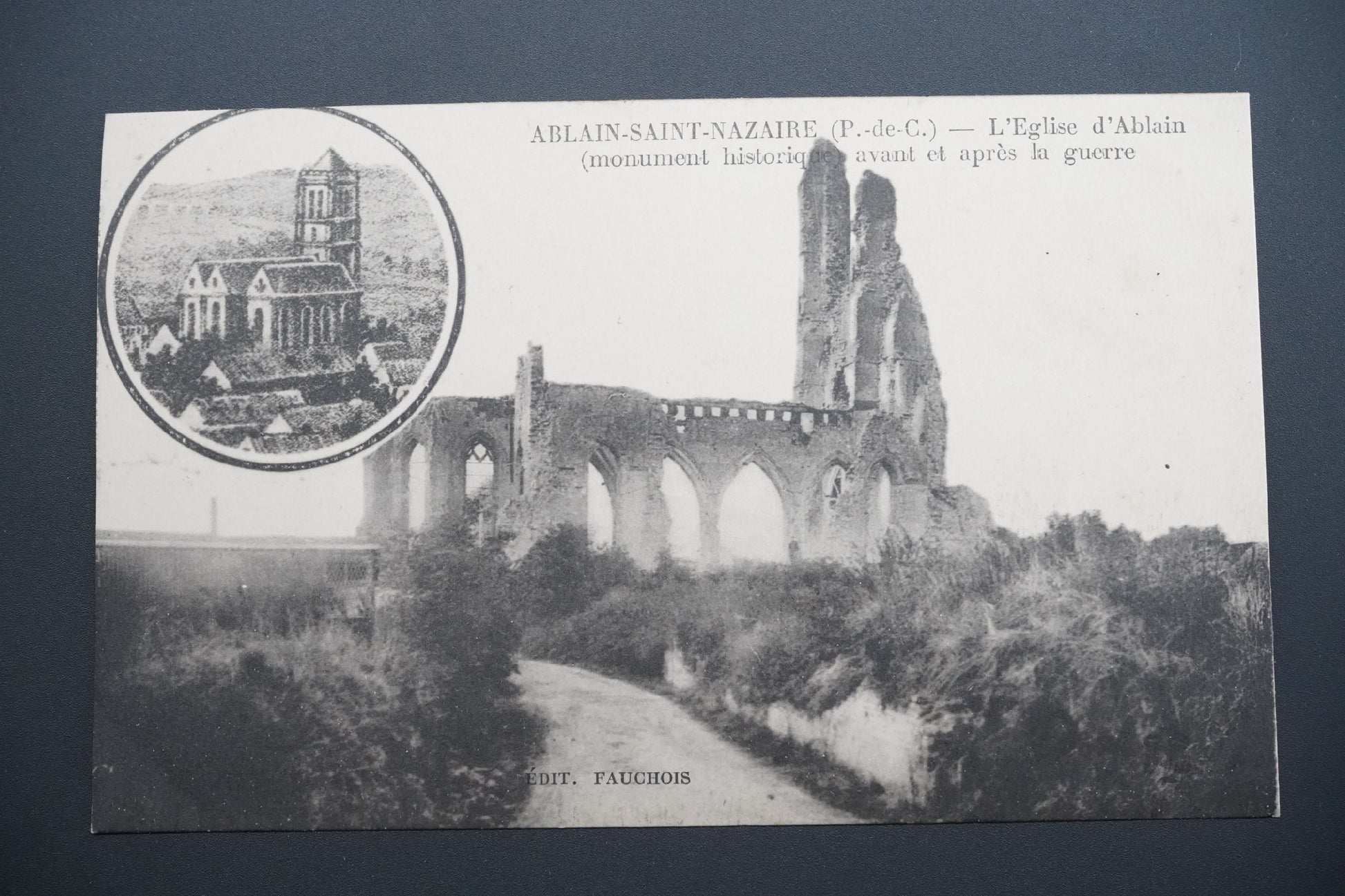 Pohlednice ABLAIN-SAINT-NAZAIRE (P.-de-C.) - L`Eglise d`Ablain (monument historique) avant et apres la guerre