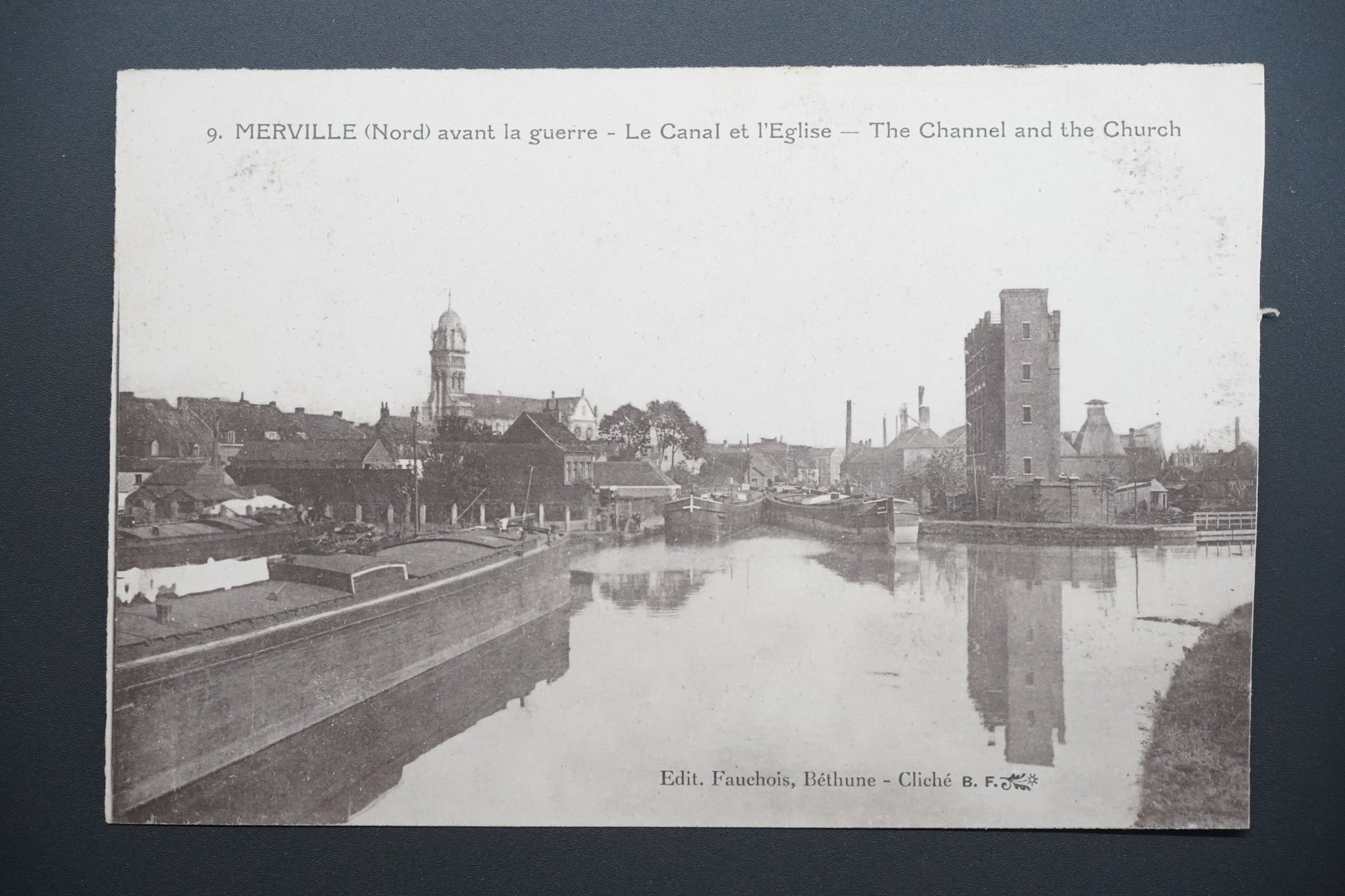 Pohlednice 9. MERVILLE (Nord) avant la guerre - Le Canal et l`Eglise - THE CHANNEL AND THE CHURCH