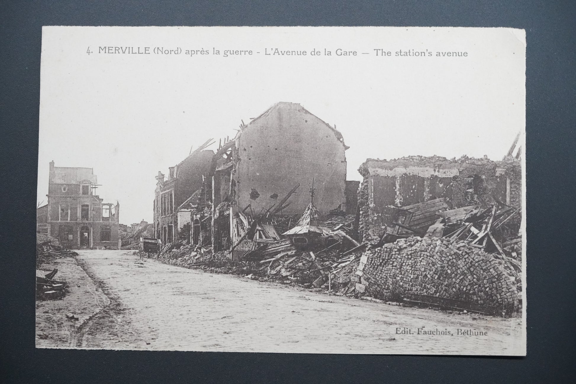 Pohlednice 4. MERVILLE (Nord) apres la guerre - L`Avenue de la Gare - THE STATION`S AVENUE