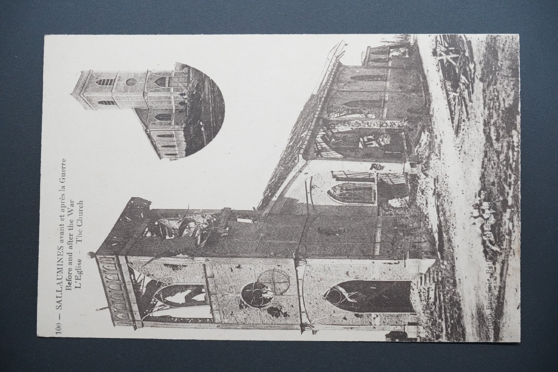 Pohlednice 100 - SALLAUMINES avant et apres la Guerre - BEFORE AND AFTER THE WAR - L`Eglise - THE CHURCH