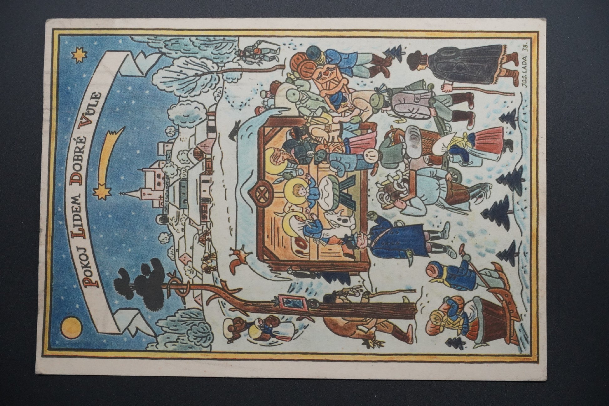 Pohlednice Vánoce – kresba J. Lady, pokoj lidem (x9958)